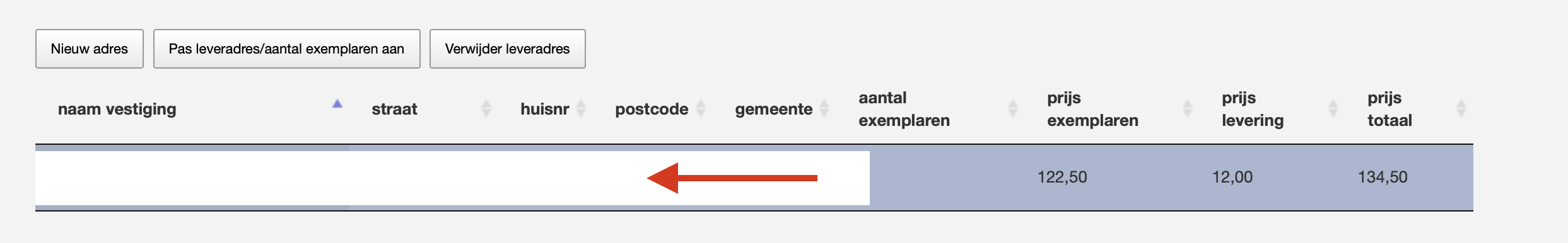 Heeft de nieuwe vestiging geen eigen instellingsnummer? Dan voeg je het nieuwe adres toe bij de leveradressen. De rapportage van de punten verloopt steeds op het niveau van instellingsnummer. Je zal dus voorlopig geen aparte resultaten kunnen raadplegen.